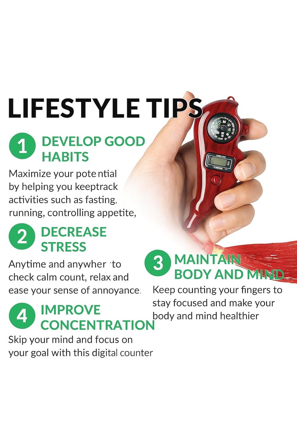 - DIGITAL COUNTER: Features a clear LCD display with 5-digit counting capacity and easy reset button for accurate prayer or mantra counting